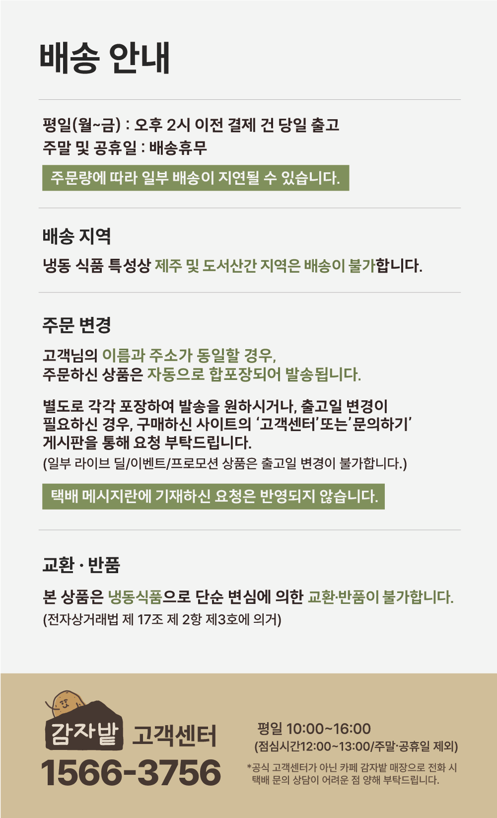 춘천감자밭 반품/교환 안내